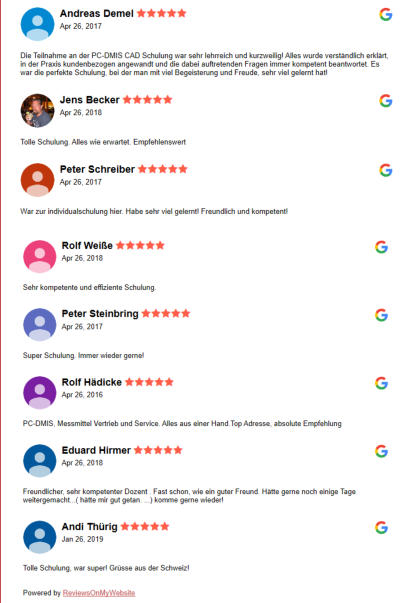 Wir bieten verschiedene Grund- und Aufbauschulungen, wie im pdf Dokument beschrieben an. Aber auch eine auf Ihr Unternehmen und Ihre bedürfnisse zugeschnittene Individualschulung für 3D Koordinatenmessmaschinen, Messarme oder optische Messmaschinen. Das Erfolgsrezept: Unsere Schulungen bestehen aus dem Vermitteln von Theorie und dem selbstständigen Lernen, an praktischen Anwendungsbeispielen und Aufgaben, unter Aufsicht eines Spezialisten. Außerdem erhalten Teilnehmer der PC-DMIS Grund- oder CAD Schulungen, unsere ausführlichen und einzigartigen Bach 3D Schulungsunterlagen, um sich jederzeit an die Schulungsinhalte zurück zu erinnern und das Gelernte, direkt anwenden.